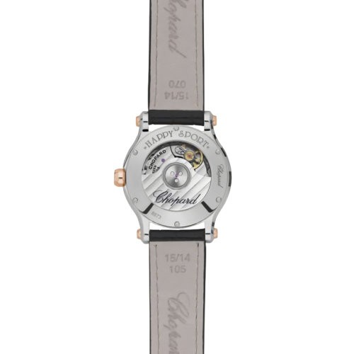 预定款1-2周发货 Chopard/萧邦 Happy Sport系列 自动机械表精钢玫瑰金表壳黑鳄鱼皮表带镶钻表盘女表30毫米278573-6013
