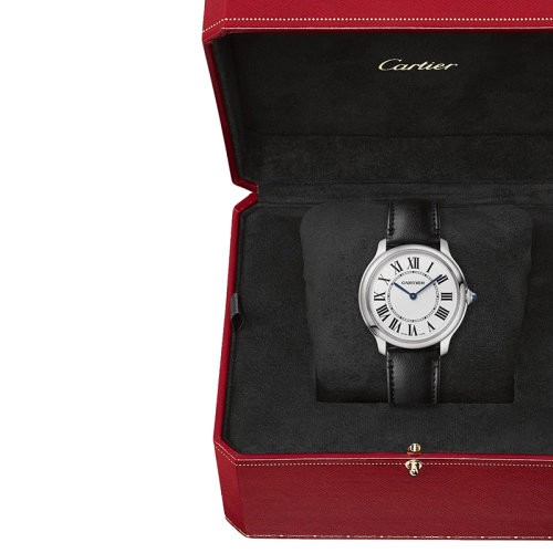 【新品手表】CARTIER/卡地亚 22年秋冬新款 七夕Rond系列 男女同款白色表盘石英机芯精钢表壳黑色非动物性皮革材质表带腕表36毫米WSRN0031