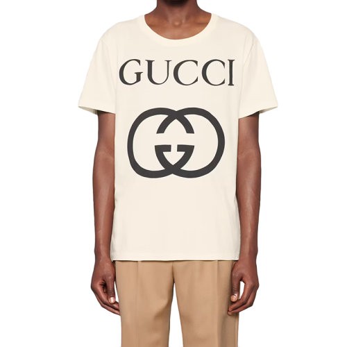【服装】GUCCI/古驰 22年春夏新款 男士白色纯棉互扣式双G超大造型短袖T恤493117X3Q357561(衣服)