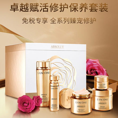 (05促销产品)Lancome/兰蒄菁纯臻颜卓越赋活修护保养套组(菁纯美容液150ml,轻盈版乳霜60ml,滋润版乳霜60ml,精华30ml,眼霜20ml,包包)(化妆品)