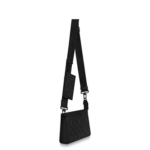【新品包包】Louis Vuitton/路易威登 22春夏新款GASTON WEARABLE WALLET系列 男士黑色老花压印皮革黑扣配可拆卸小袋单肩斜挎手拿包M81115(04促销产品)